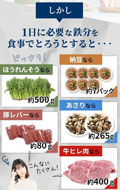 ・・・毎日、食事で鉄分を補うなんて無理だと思った…。